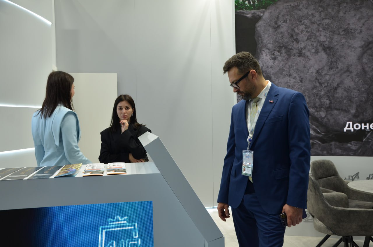 Стенд создан под лозунгом «Возрождаем Донбасс вместе» – символ движения вперед и восстановления. Гостей ждут: