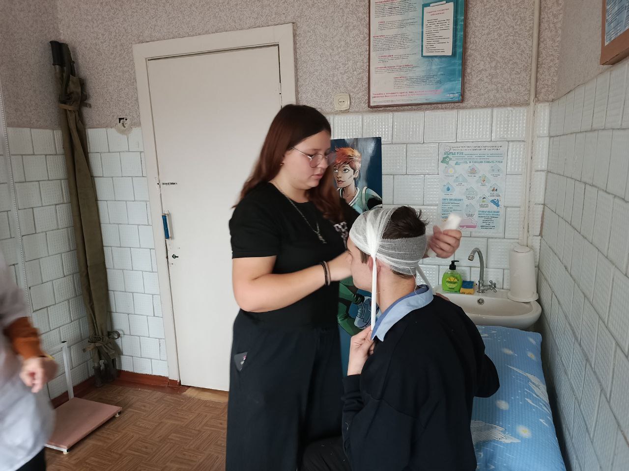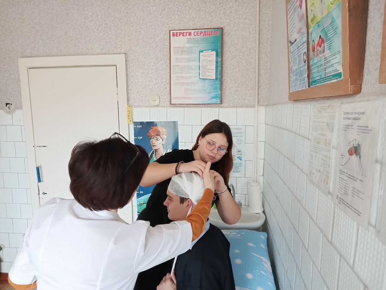 Так же был проведен мастер класс по способу наложения кровоостанавливающих повязок.