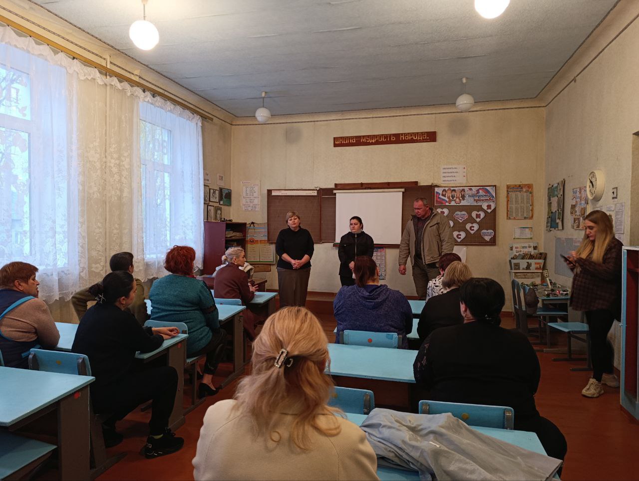 Сегодня, 19 ноября в Червоногвардейском районе заместитель главы Администрации городского округа Макеевка Ирина Сидякина провела встречу с жителями жилого массива Первомайский по адресу в помещении ГБОУ «Основная школа № 77 городского округа Макеевки», на которой присутствовали депутаты Народного Совета ДНР первого созыва Марина Каплянок и Денис Островский.