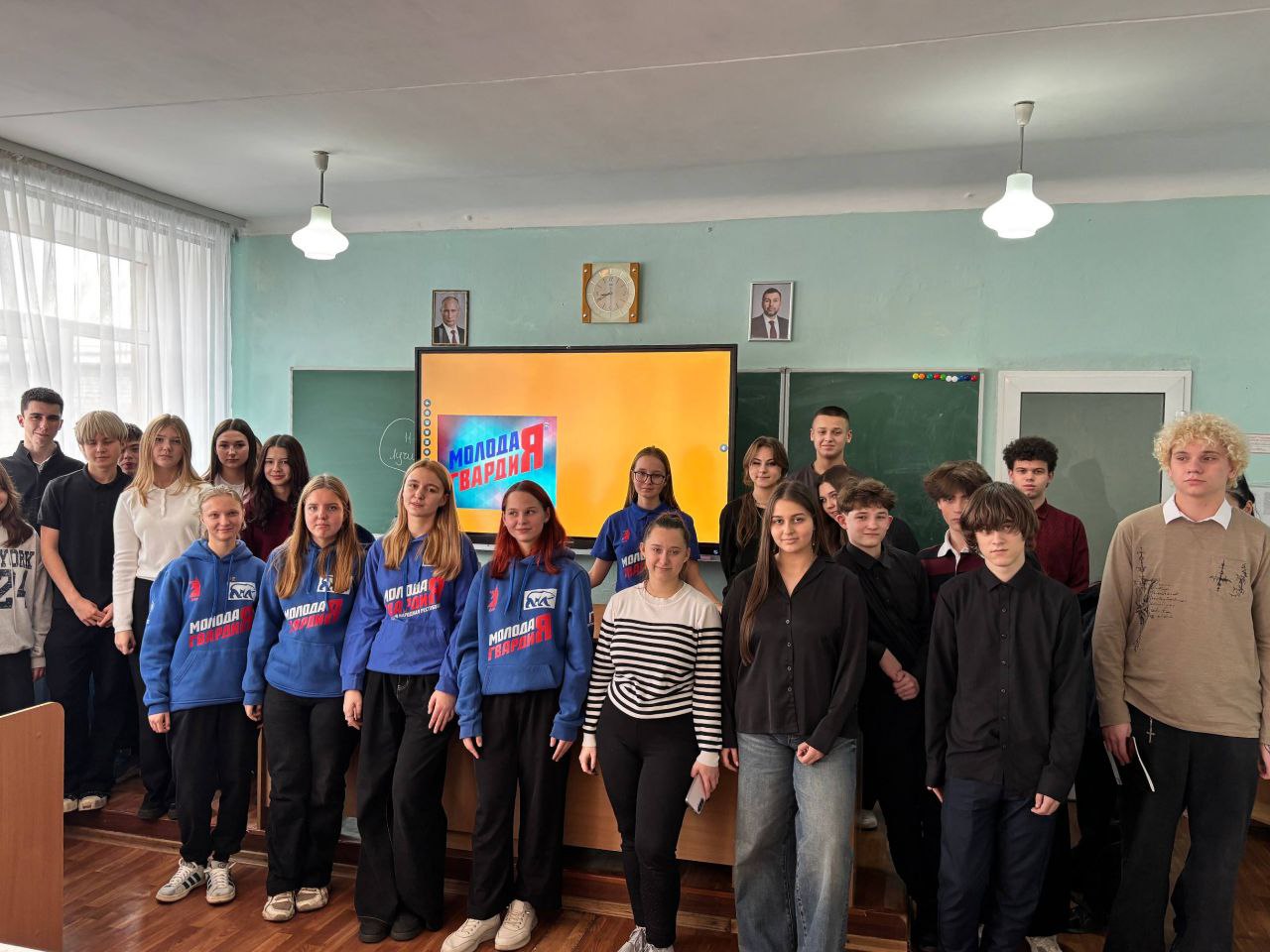Активисты Ждановского штаба МР и МГЕР ДНР провели для учеников школы №2 музыкальное состязание. Школьники угадывали праздничные мелодии и подпевали свои любимые песни.