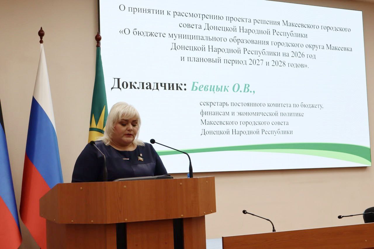 На заседании депутаты рассмотрели проект решения «О принятии к рассмотрению проекта решения Макеевского городского совета Донецкой Народной Республики «О бюджете муниципального образования городского округа Макеевка Донецкой Народной Республики на 2026 год и плановый период 2027 и 2028 годов».