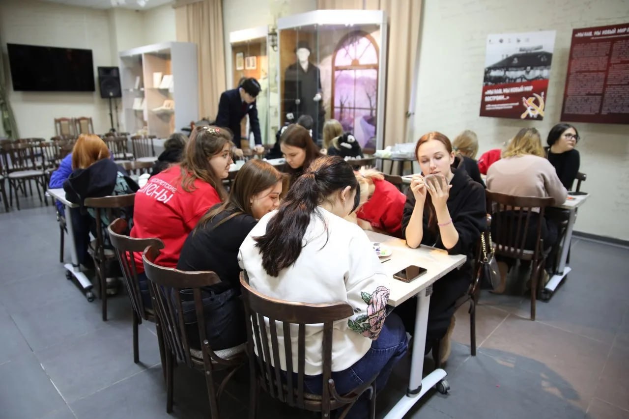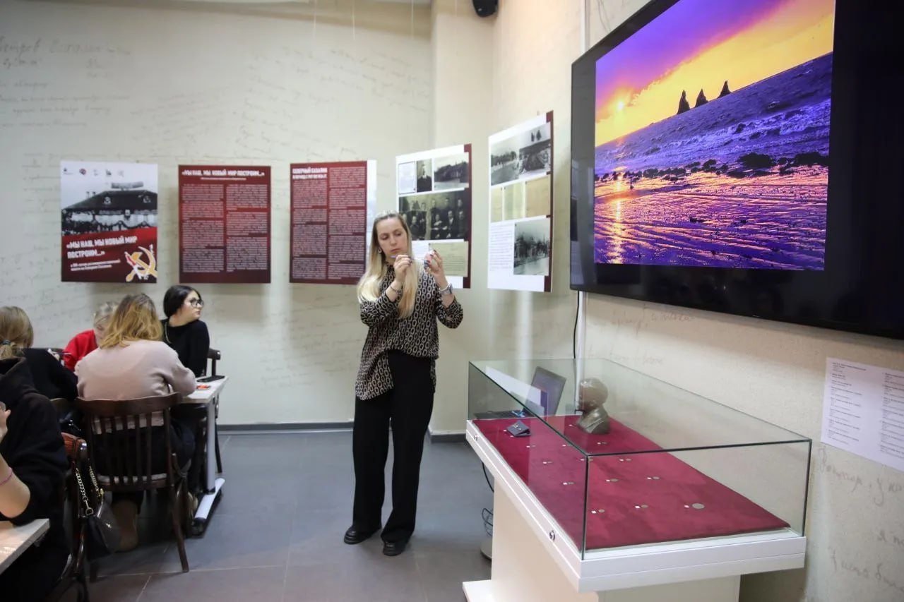 Методист Александра Трусова провела для ребят из Шахтерского округа экскурсию по музею книги Чехова и ознакомила их с постоянными и временными выставками.
