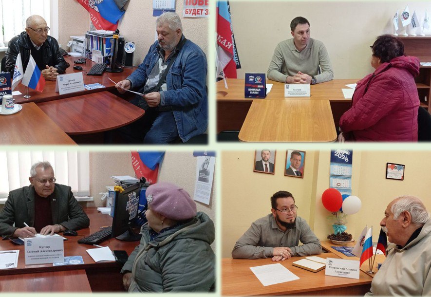 Председатель Юрий Атаманов и депутаты Донецкого городского совета Альбина Афенченко, Ирина Бениаминова, Ирина Глыбовская, Рифат Грачев, Константин Климов, Алексей Ковровский, Евгений Куглер, Ирина Милус, Илона Немсадзе, Лилия Ошурко, Дмитрий Пефтеев, Инна Преснухина, Михаил Рыбаков, Валерий Солодовников и Виктория Хощенко пообщались с дончанами в рамках приёма граждан.