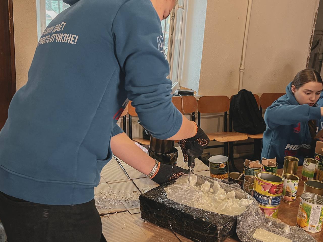 Активисты Никитовского районного штаба Молодёжки Горловки сделали окопные свечи с подростком состоящим на учёте в подразделении по делам несовершеннолетних, которые в скором времени передадут военнослужащим на фронт.
