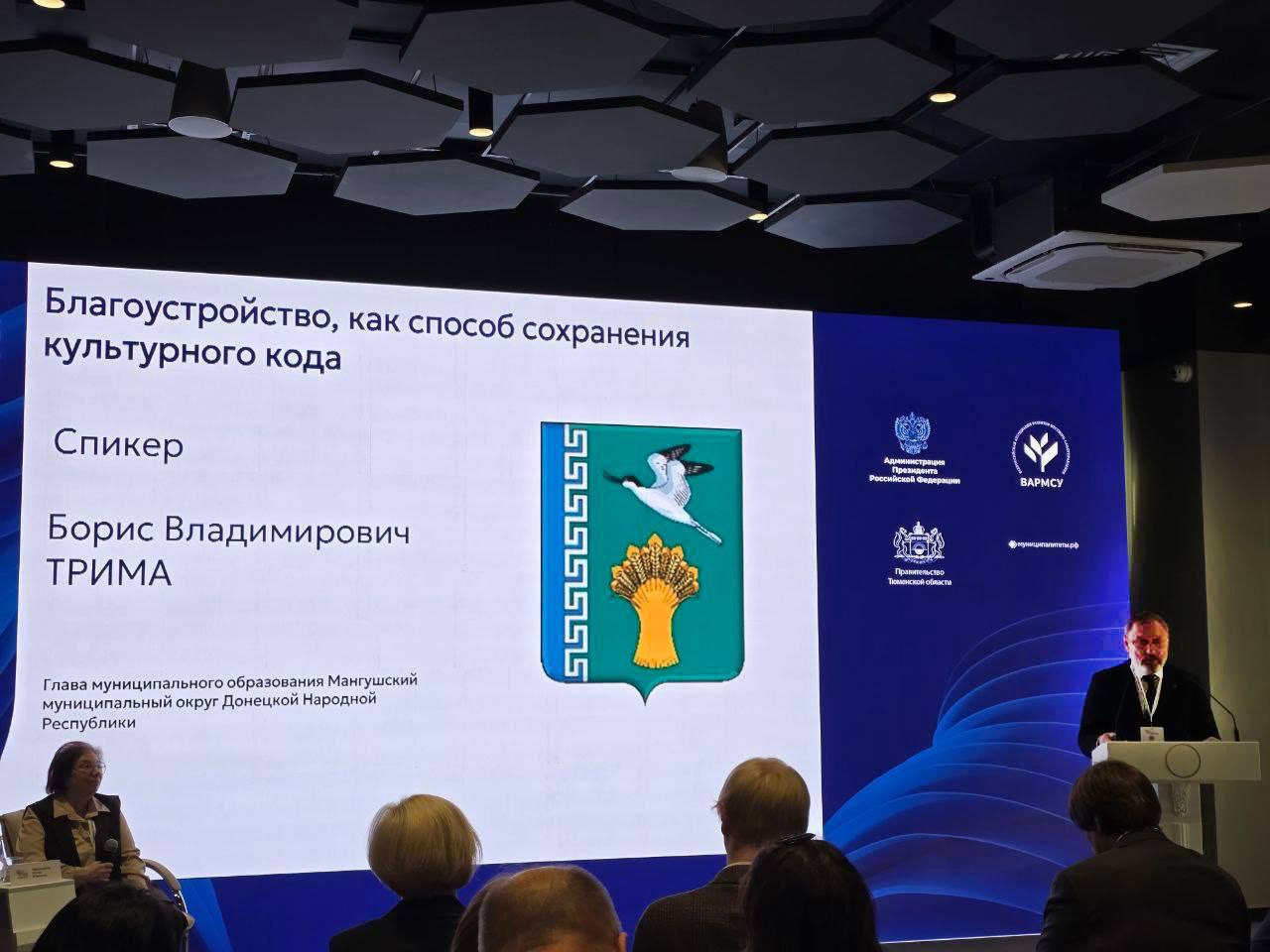 На региональном этапе Всероссийского муниципального форума «Малая Родина — сила России» глава Мангушского муниципального округа Борис Трима поделился опытом реализации проекта «Благоустройство как способ сохранения культурного кода». В рамках своего выступления на секции «7 минут о муниципалитетах» он рассказал о создании нового сквера в пгт Мангуш.