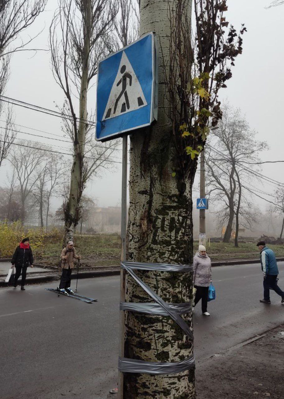 Осенние чудеса на Гвардейке: знак на скотче и лыжник на асфальте