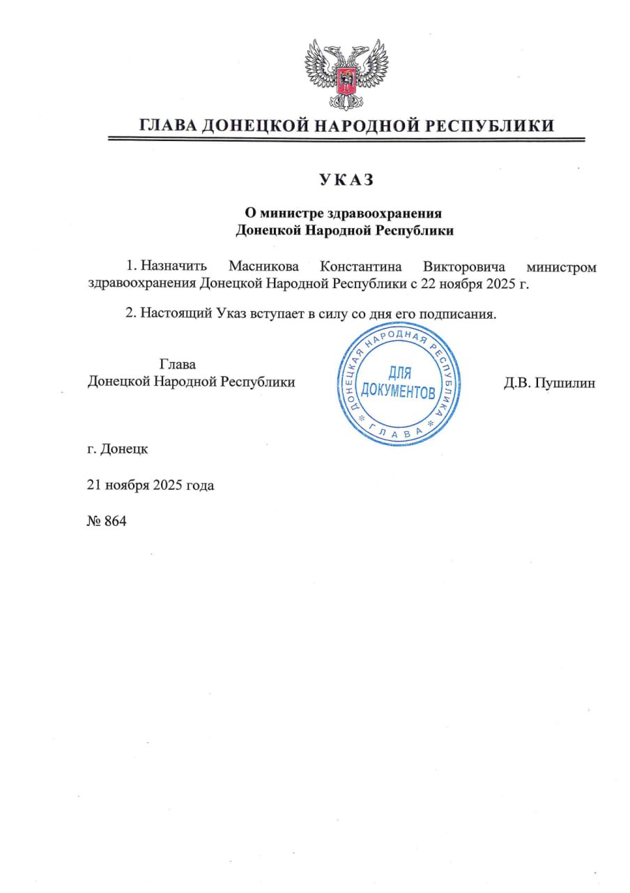 Соответствующий указ подписан сегодня Главой ДНР.