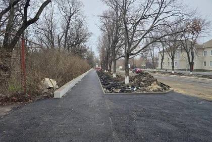 Специалисты уже завершили укладку бордюров на пешеходных зонах, брусчатки и заасфальтировали часть улицы Ленина.