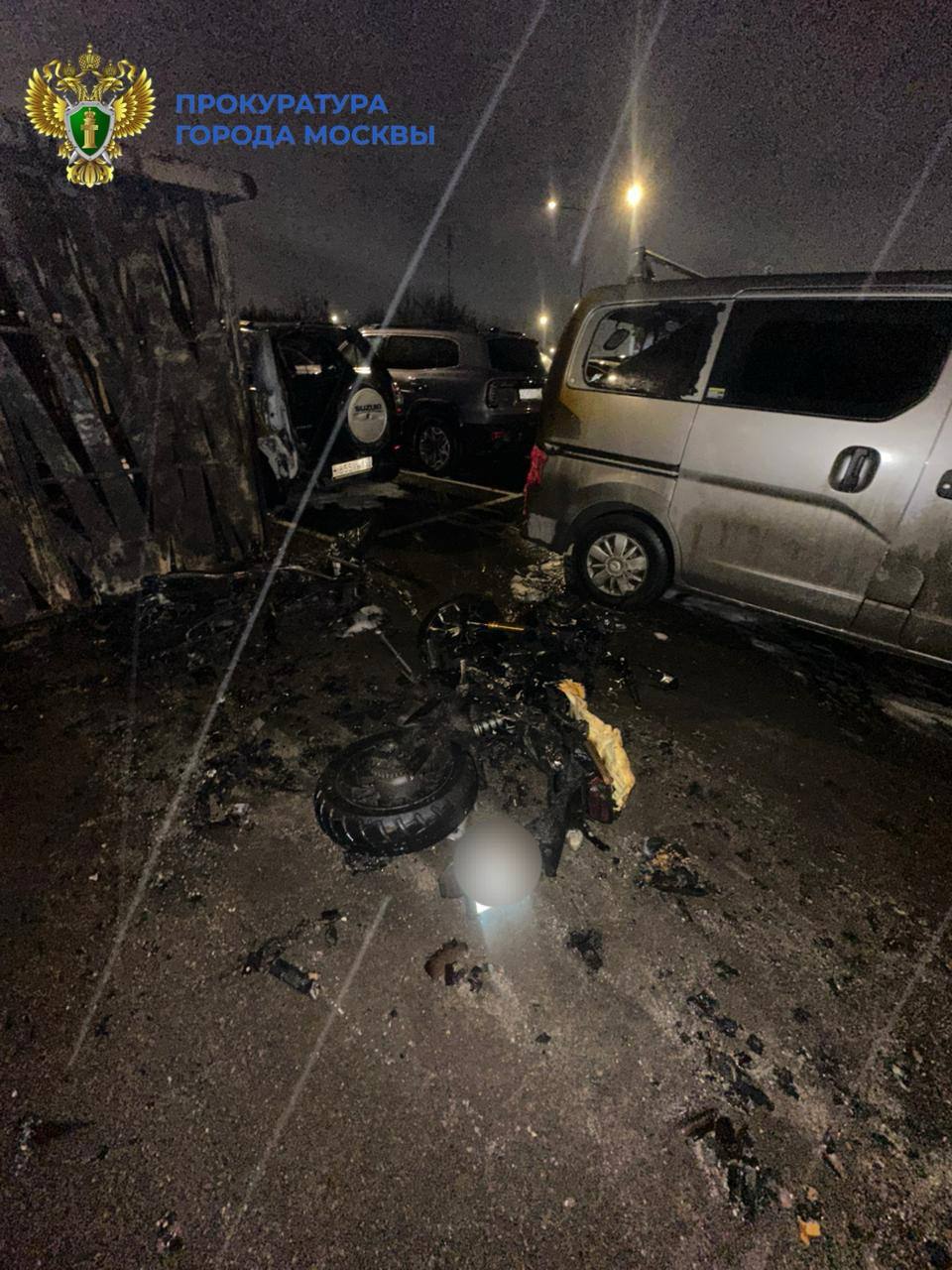 Восемь автомобилей и два мотоцикла повреждены в результате пожара на Донецкой улице в Москве, сообщили в столичной прокуратуре