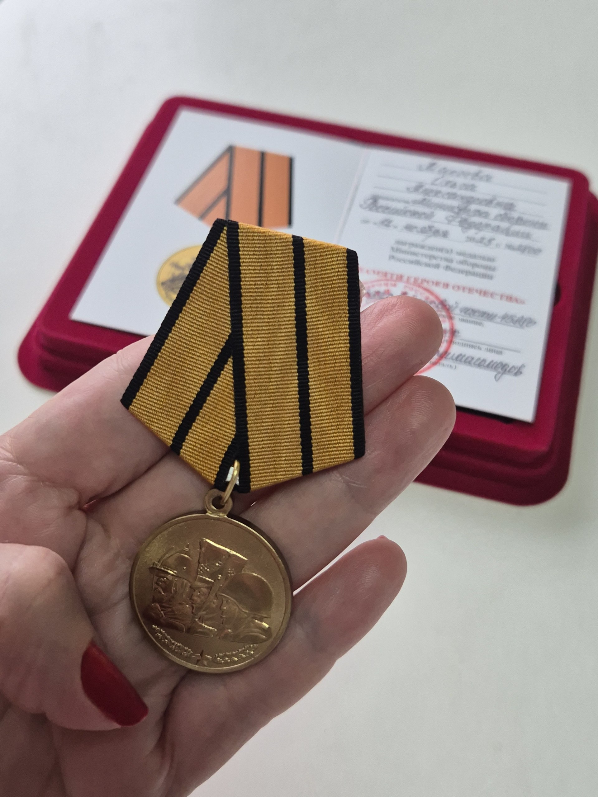 В рамках конференции в Министерстве обороны Российской Федерации была награждена ведомственной медалью «Памяти героев Отечества».