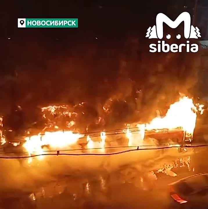 Трамвай полностью выгорел на Дзержинского в Новосибирске.
