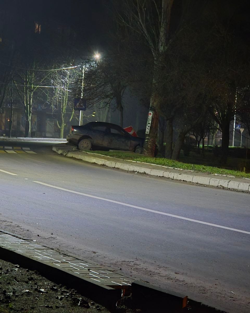 Пишут, что водитель снёс дорожный знак и влетел в дерево в Петровском районе.