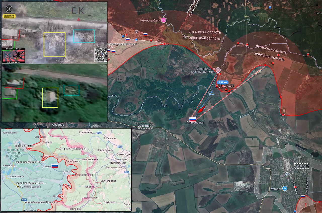 ВС России продвинулись на 2,5 км на северном охвате Северска и достигли жилой застройки в Платоновке. Передовая позиция ВС РФ в северной части населённого пункта подверглась обстрелу ВСУ.