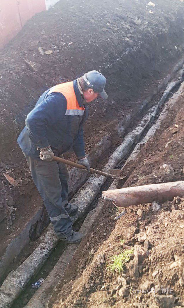 Специалисты Филиала "Харцызсктеплосеть" ГУП ДНР "Донбасстеплоэнерго" оперативно ликвидировали аварию на участке теплотрассы от котельной № 12.