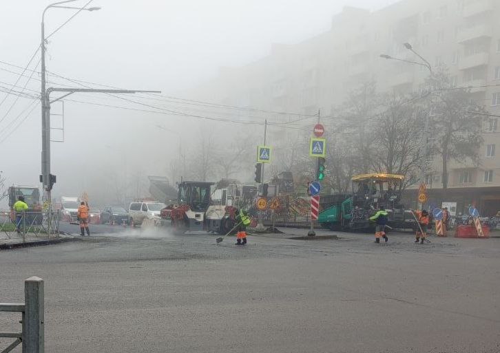 В районе "тысячи мелочей" на пр. Ленина продолжаются дорожные работы