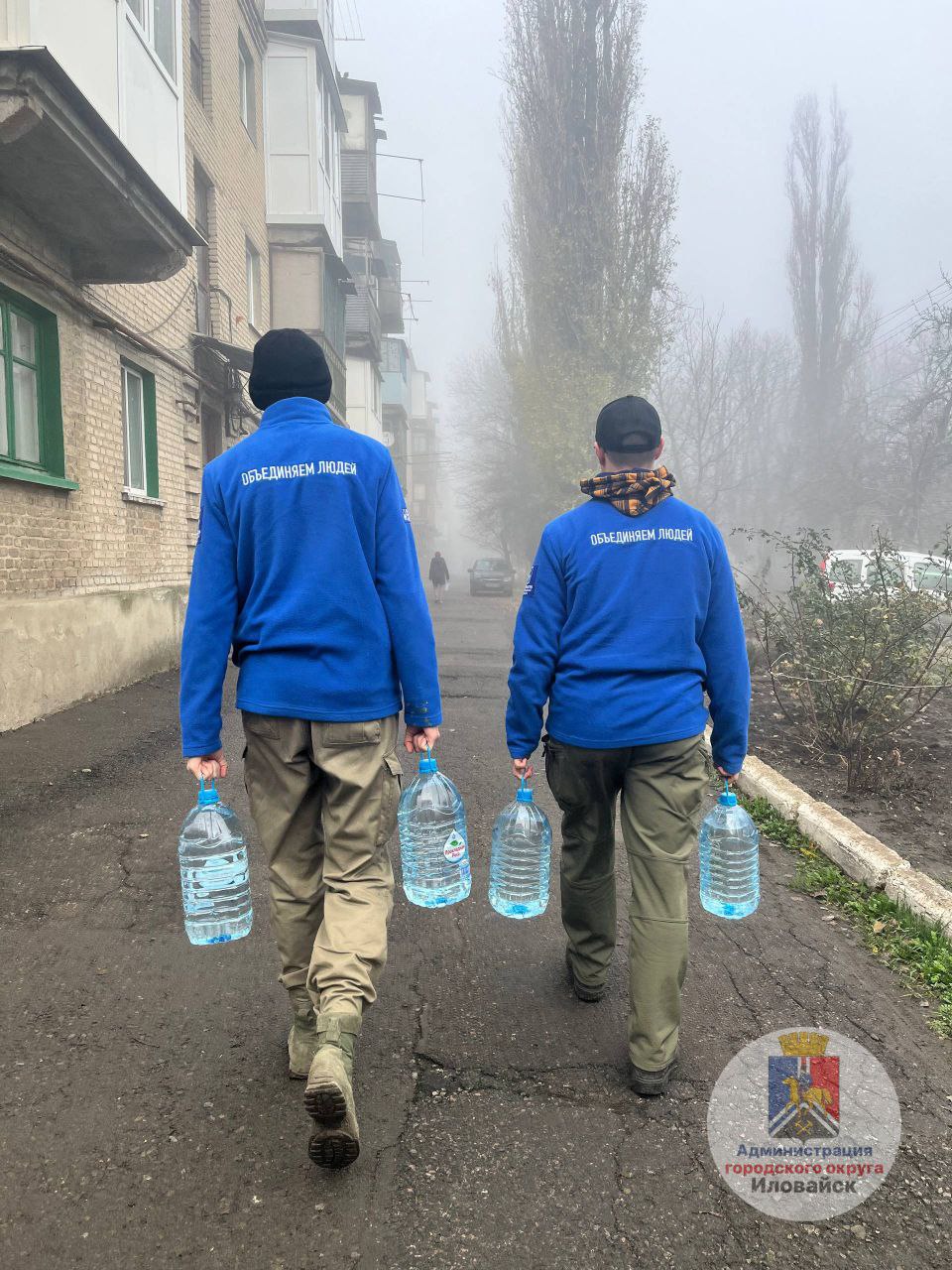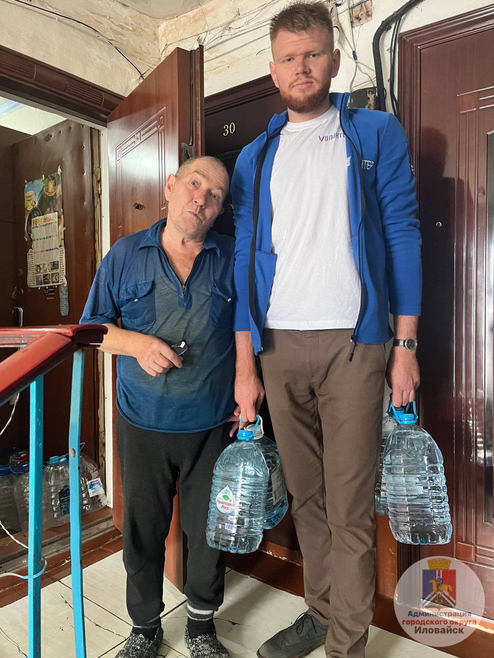 Активная молодёжь Иловайска совместно с волонтёрами организации «Дом Народного Единства» из Нижнего Новгорода при поддержке администрации городского округа Иловайск провела добрую акцию: молодые люди навестили пожилых жителей города и доставили им питьевую и техническую воду.