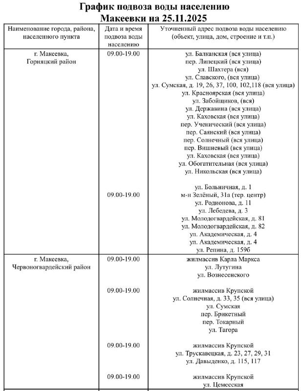 График подвоза воды населению городского округа Макеевка
