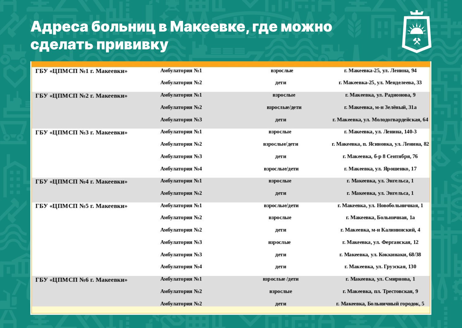 Адреса больниц в Макеевке, где можно сделать прививку, — на карточке.