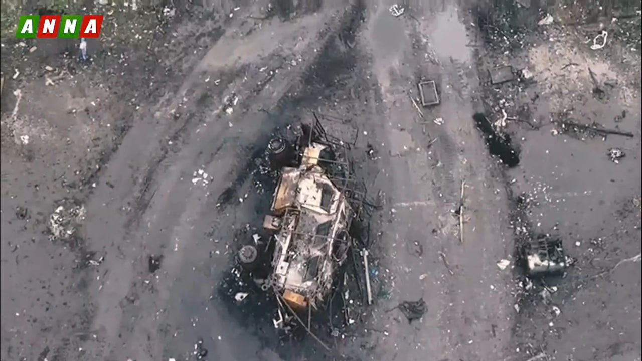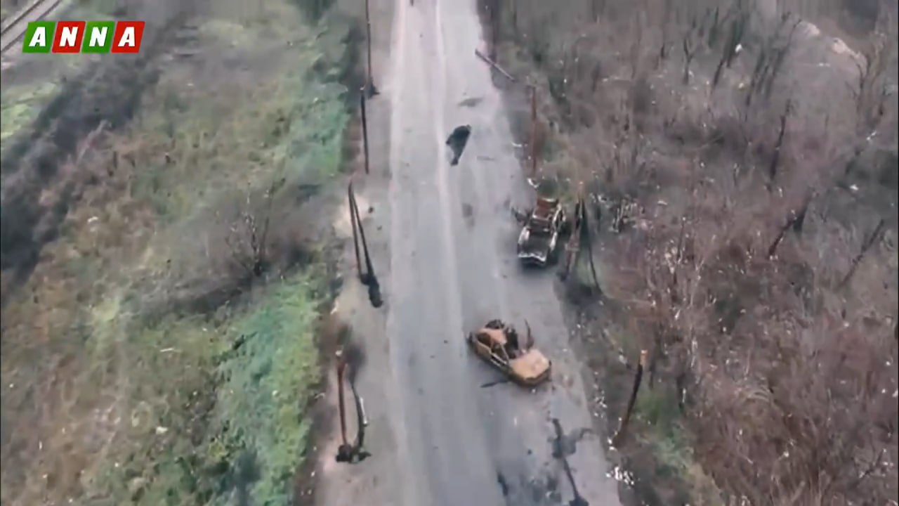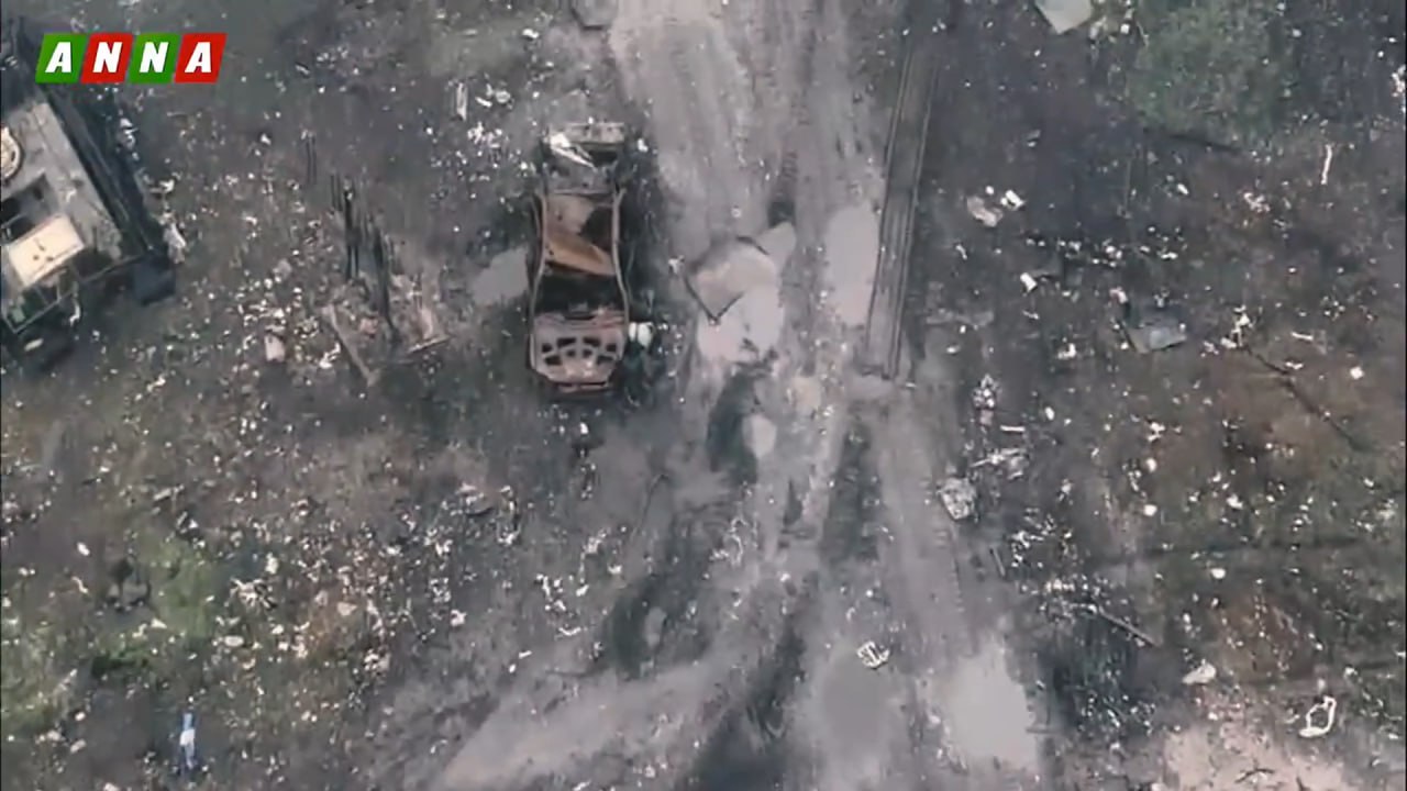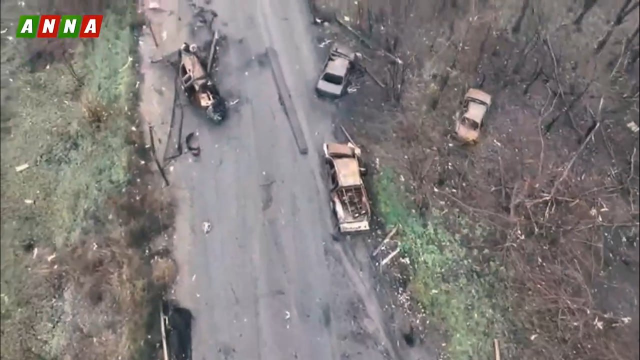 Так выглядит кладбище украинской техники между Мирноградом и Родинским. Судя по видео, оно пополнилось очередной сгоревшей бронемашиной. Видео: @anna_news