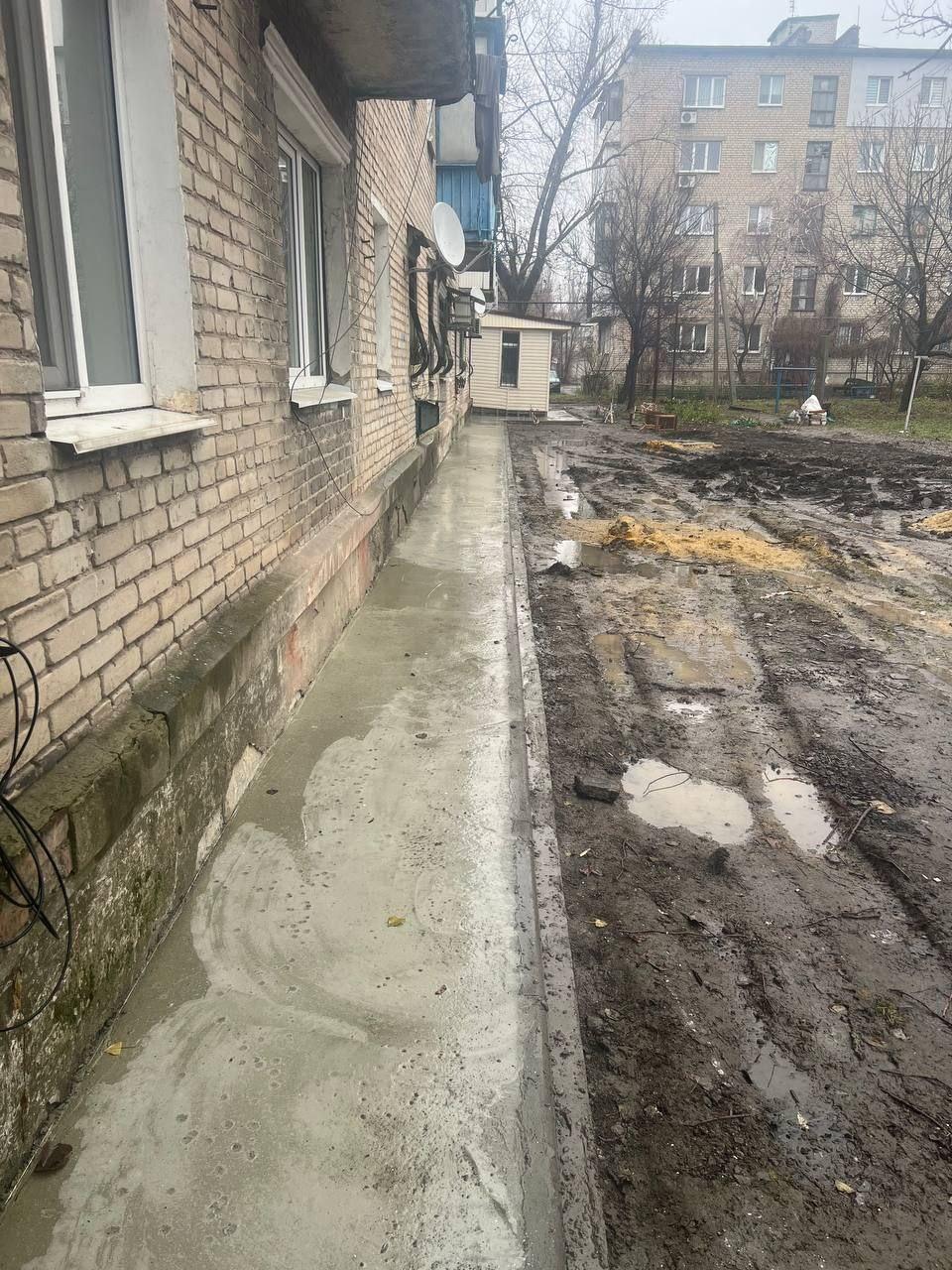 Сейчас ведется устройство отмостки и восстановление фасада здания.