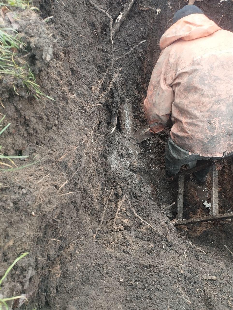 Рабочие установили ремонтную муфту и после этого засыпали котлован на ул. Вокзальной.