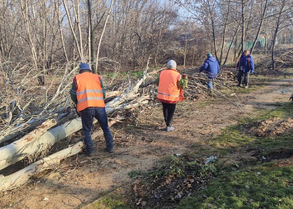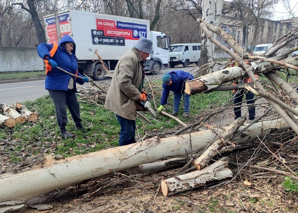 Специалисты муниципального предприятия «Зелёное строительство» в Куйбышевском районе продолжают плановые работы по благоустройству. На улице Куйбышева они проводят кронирование и спил деревьев.