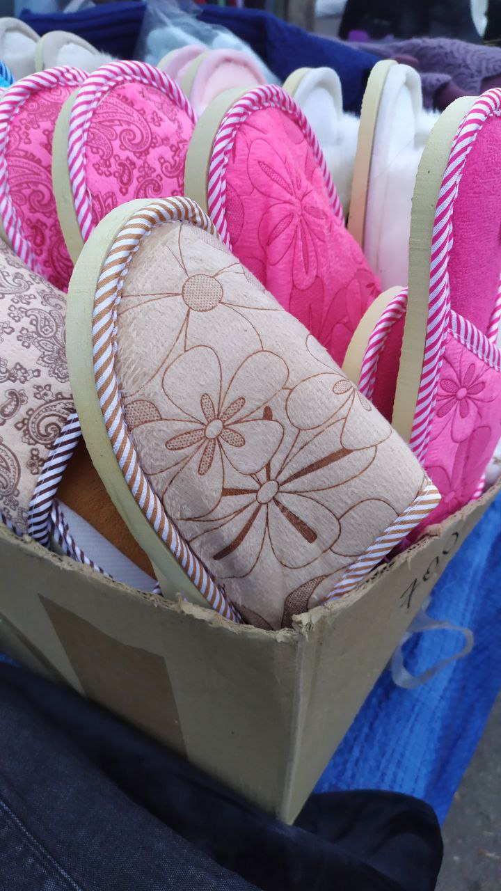 Помимо продовольственных товаров посетители могли приобрести трикотаж и обувь.