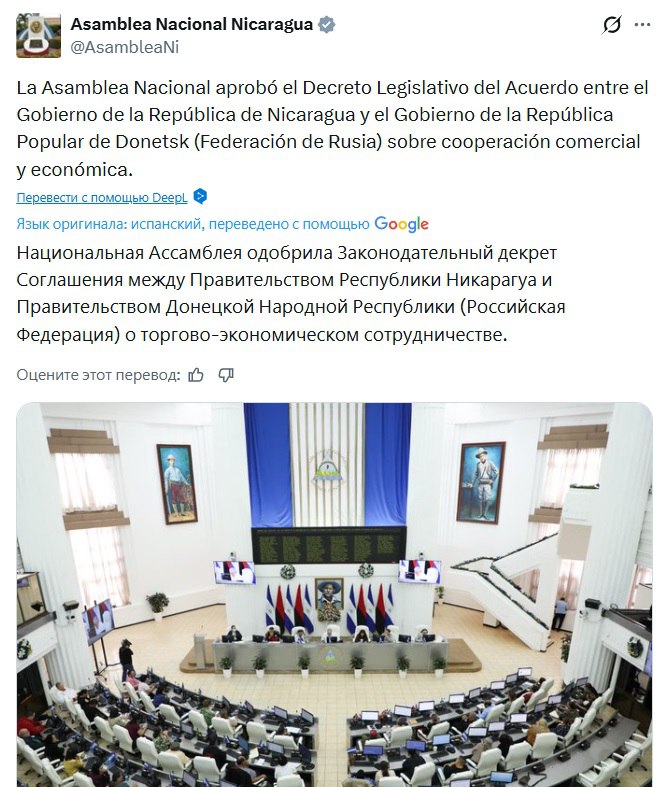 Парламент Никарагуа одобрил соглашение об установлении торговых отношений с ДНР и Севастополем
