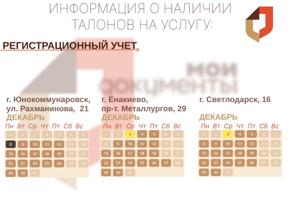 Перед посещением нужного вам отделения советуем просмотреть актуальность доступных талонов на Портале ГБУ "МФЦ ДНР"