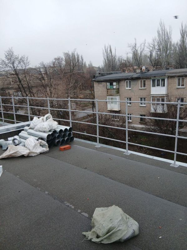 Нижегородская бригада проводит финальные этапы работ по обновлению кровли жилого дома на улице Патона в Харцызске