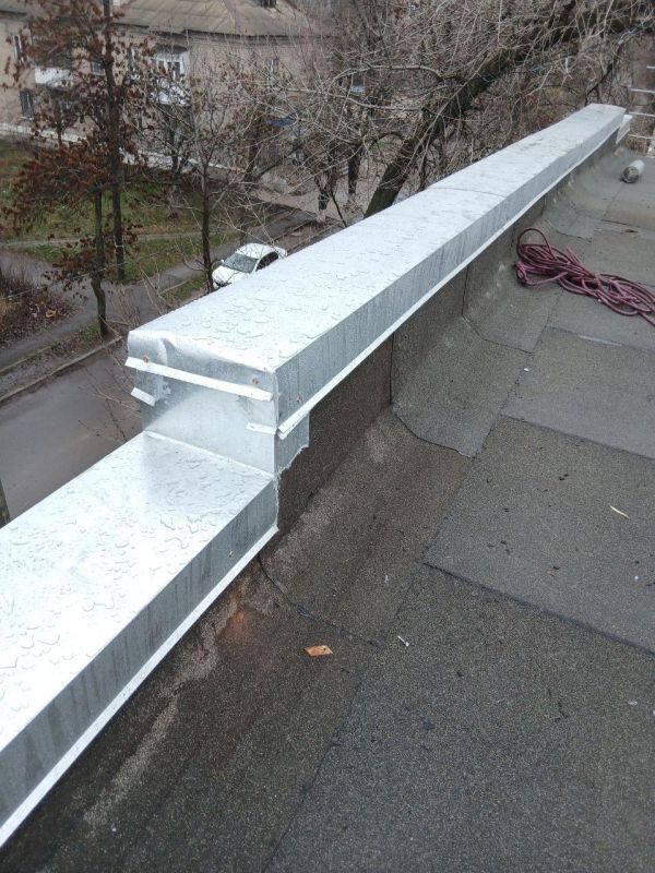 Параллельно рабочие приступили к установке водосточной системы.