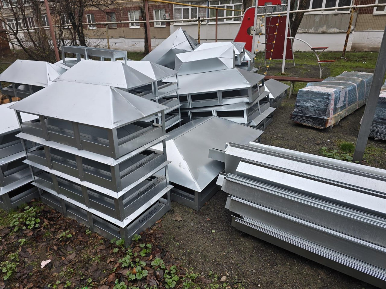 Специалисты доставили металлические конструкции, защитные колпаки и ограждения.
