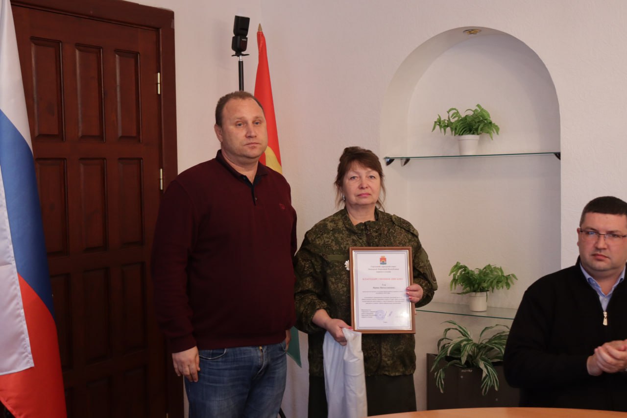Особое внимание было уделено Ирине Вячеславовне Гуц, председателю местного отделения Всероссийского женского союза «НАДЕЖДА РОССИИ». Ей было вручено благодарственное письмо Торезского городского совета за активную гражданскую позицию, большой вклад в общественную жизнь города и многолетнюю волонтёрскую деятельность, а также памятный подарок.
