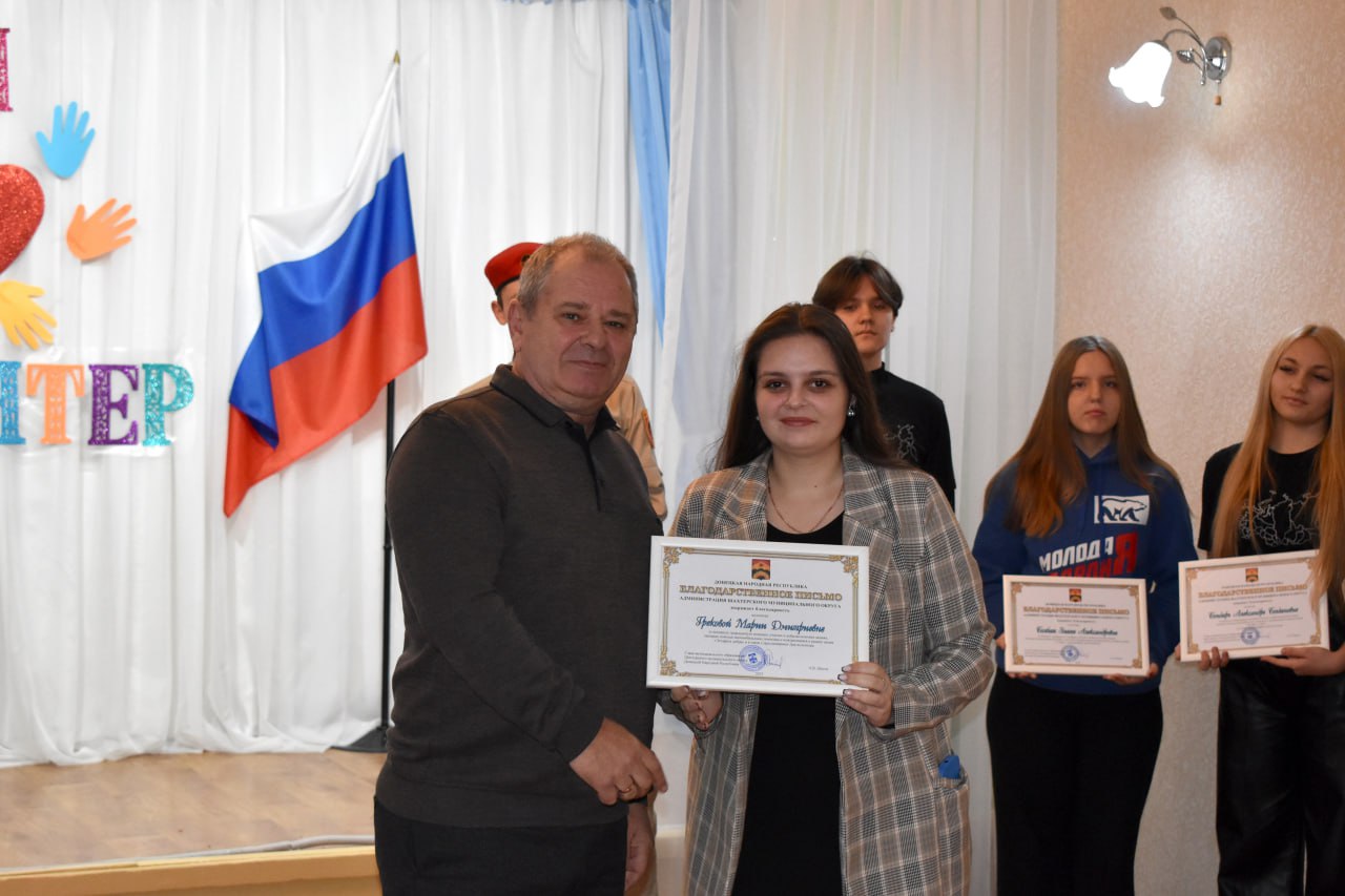 Заместитель главы Шахтерского муниципального округа Сергей Назаров высоко оценил вклад волонтеров в развитии округа и вручил благодарственные письма 42 активистам.