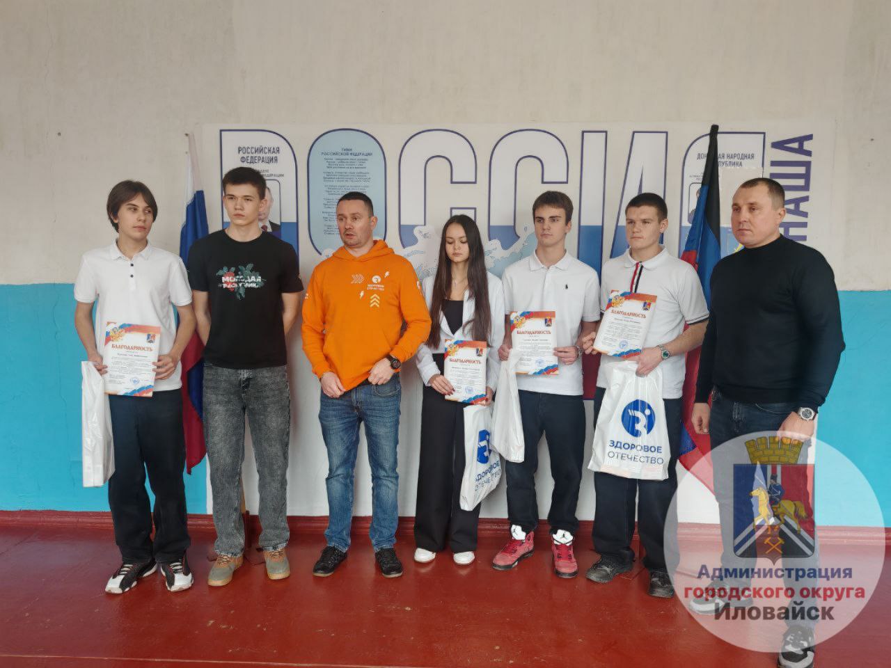 В конце мероприятия заведующий сектором физической культуры, спорта и молодежной политики Киреев Владимир Александрович и помощник депутата Государственной Думы, вице-спикер Российской Федерации, руководитель ОД «Здоровое Отечество» в ДНР Трошин Роман Владимирович вручили грамоты и благодарственные письма активной молодежи округа.