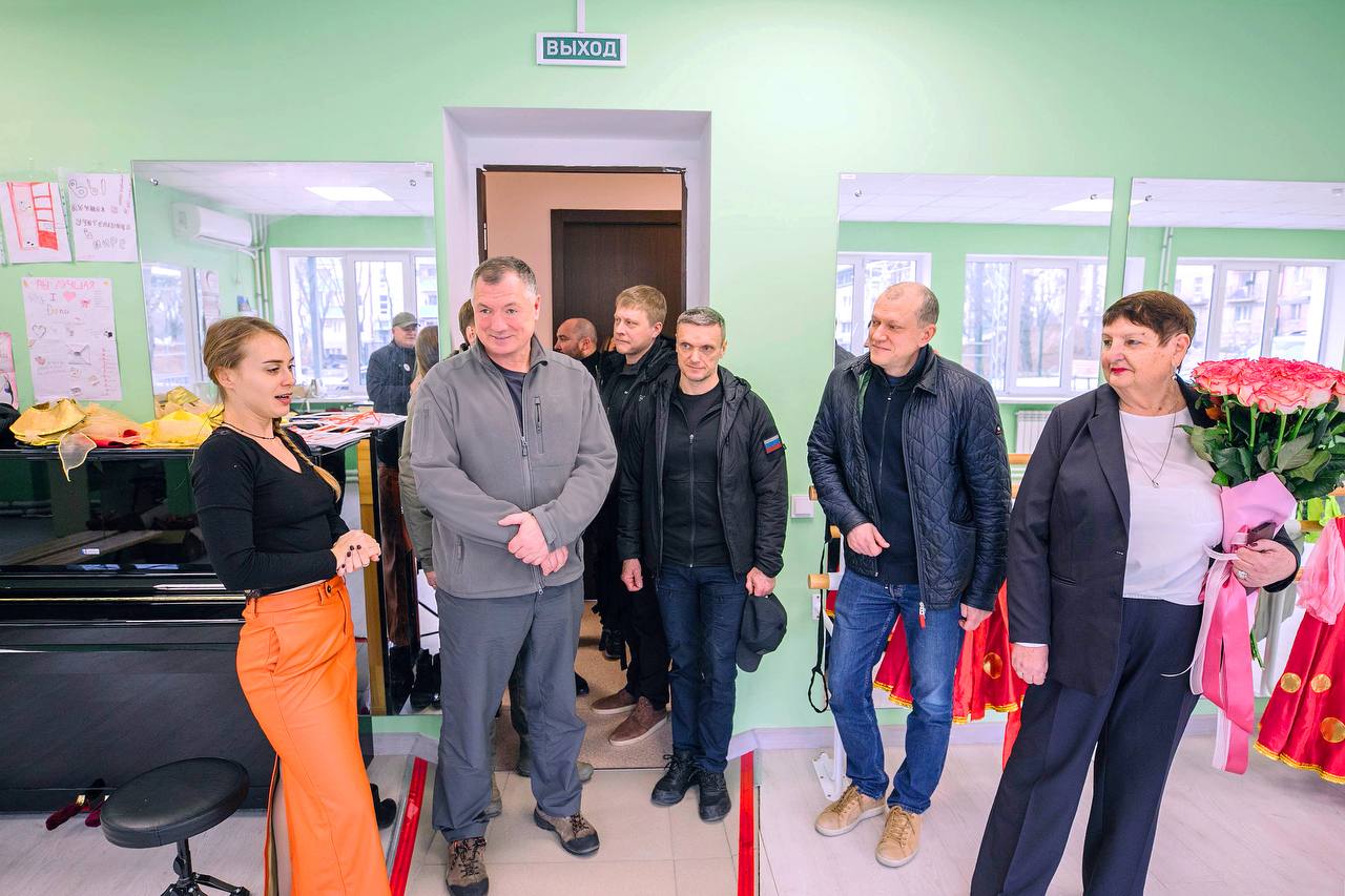 Он также посетил отремонтированную школу искусств № 1, которая отметила своё 50-летие. Специалисты из Ленинградской области создали комфортные условия для обучения детей, восстановив треть здания практически с нуля.
