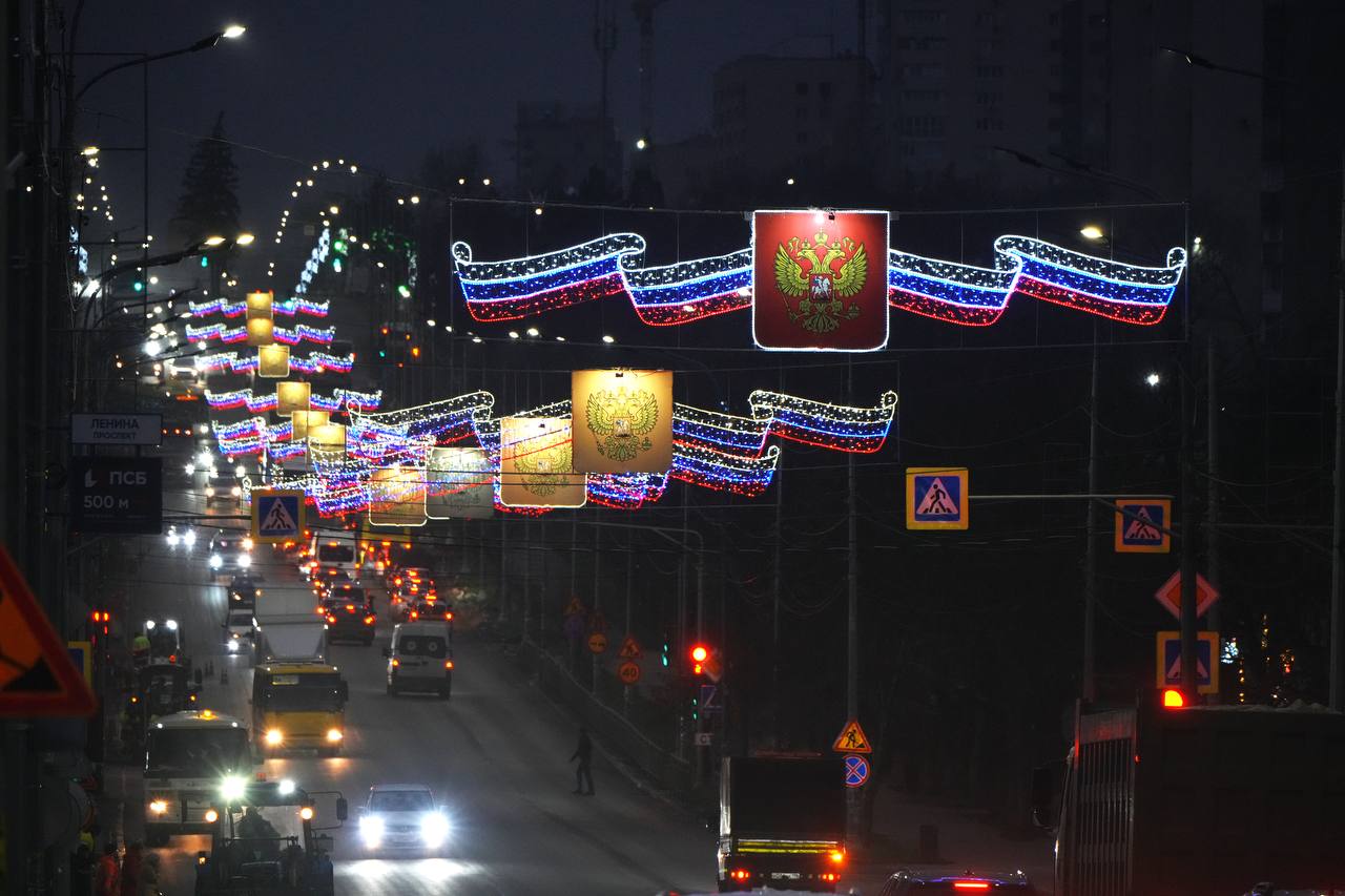 От подземного перехода до улицы Леваневского установлено 15 гирлянд в цветах флага и с гербом Российской Федерации. Ещё 5 таких же гирлянд протянулись от перехода до драмтеатра. Также праздничное настроение добавляют светодиодные гирлянды (или украшения) в окнах и на балконах местных жителей.