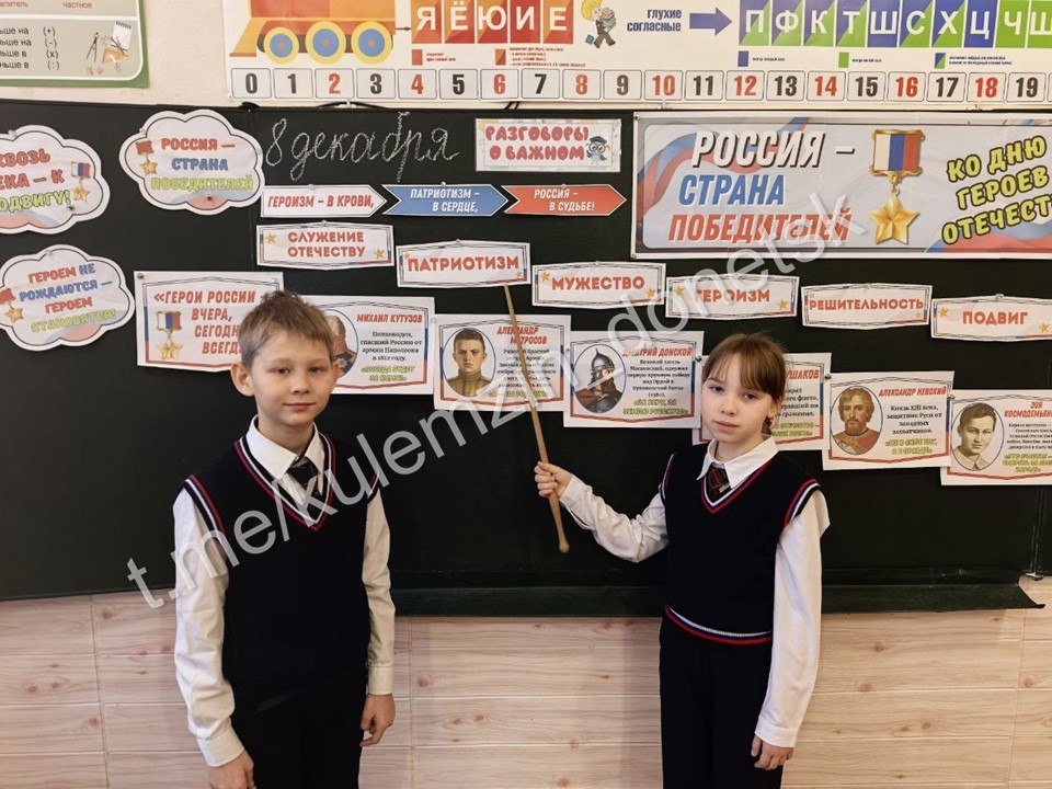 Сегодня во всех школах Донецка,в преддверии Дня Героев Отечества, прошли занятия «Разговоры о важном», посвящённые теме «Россия — страна победителей».