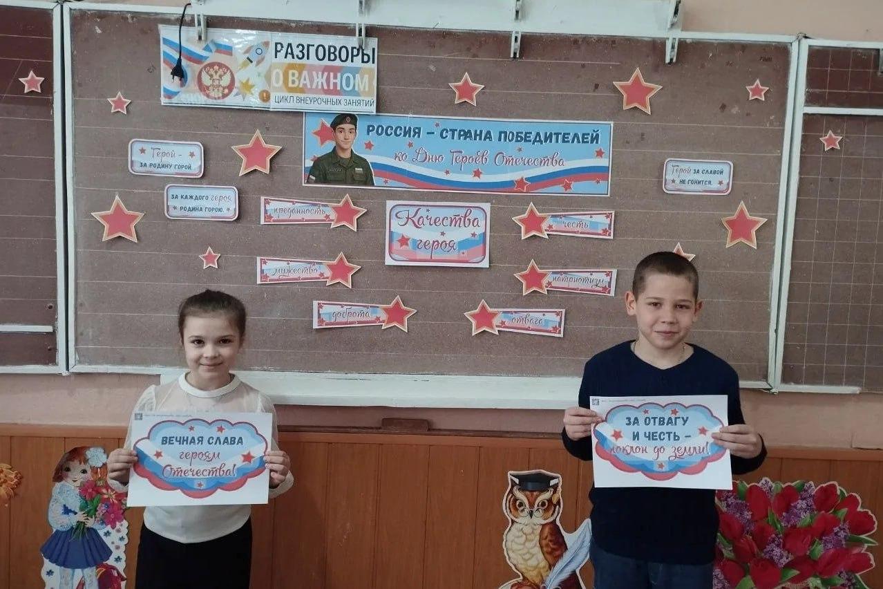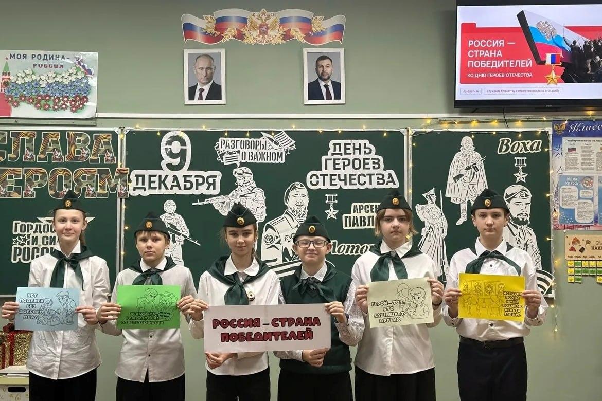 8 декабря в школах Шахтерского округа прошли занятия проекта «Разговоры о важном» по теме «Россия — страна победителей. Ко Дню Героев Отечества».