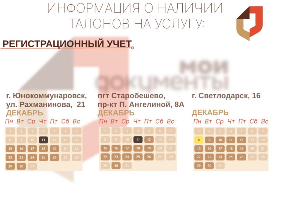Перед посещением нужного вам отделения советуем просмотреть актуальность доступных талонов на Портале ГБУ "МФЦ ДНР"