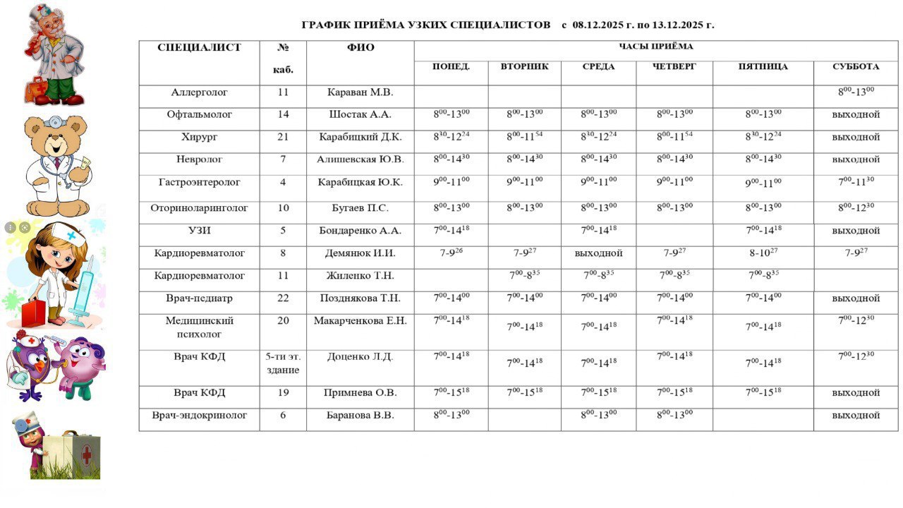 График работы специалистов ГБУ ДНР «ГДСП г.Горловки», ГБУ ДНР «Городской наркологический диспансер г. Горловки», ГБУ ДНР «ГПБ г. Горловки», ГБУ ДНР «ГПТД г.Горловки», ГБУ ДНР «ГДВД г.Горловки», ГБУ ДНР «ГСП г.Горловки», ГБУ ДНР «ГОД г. Горловки», ГБУ ДНР «ГСП № 4 г.Горловки», ГБУ ДНР «ЦОМД г. Горловки»