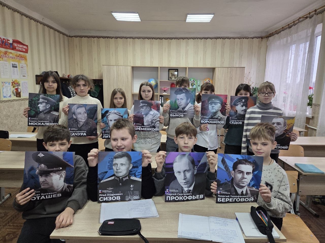 Вместе с педагогами учащиеся говорили о служении Отечеству, преемственности поколений героев, ответственности за судьбу страны, а также о глубоком уважении к воинской доблести и гражданскому подвигу.