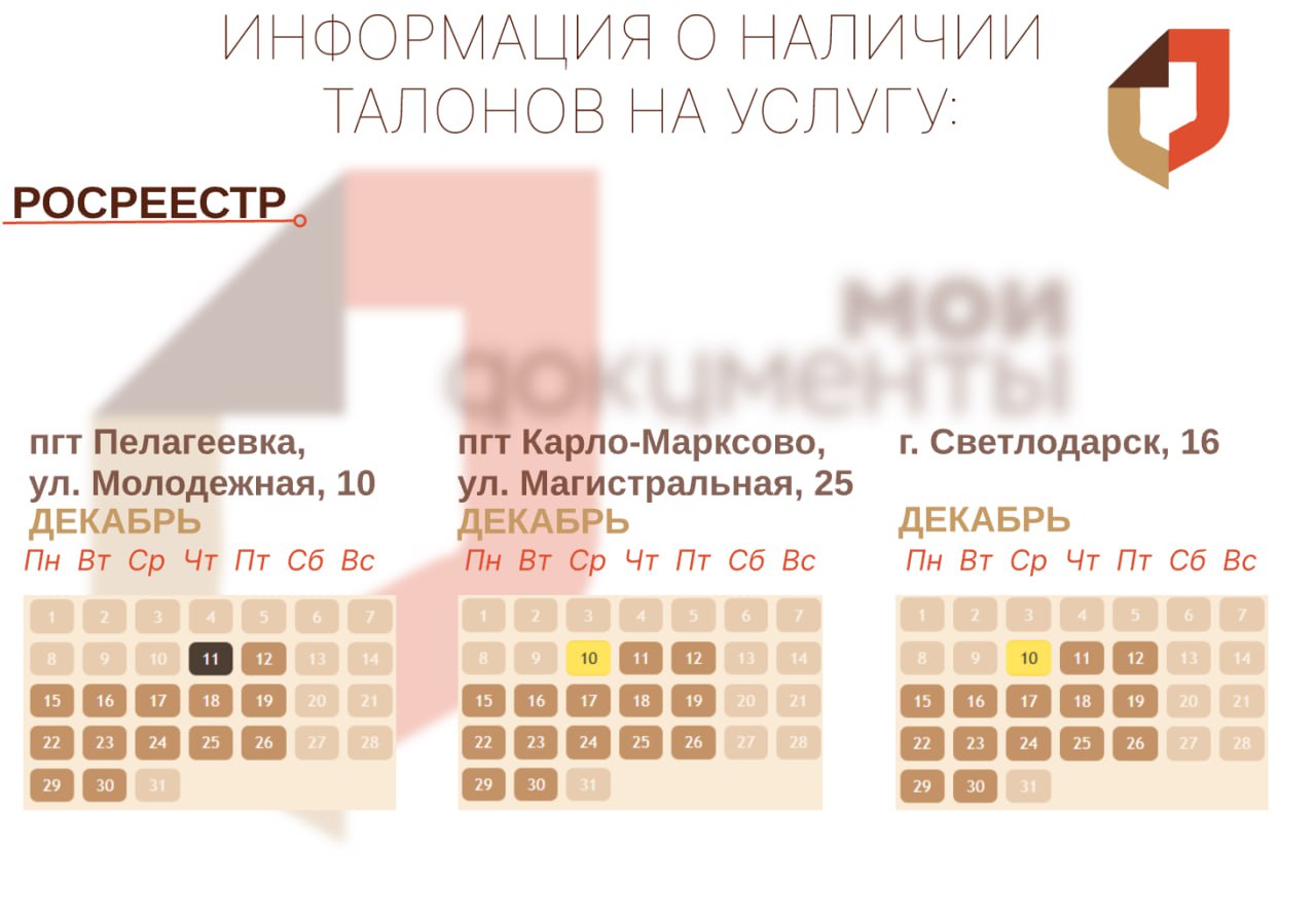 Актуальное наличие талонов в разных отделениях МФЦ