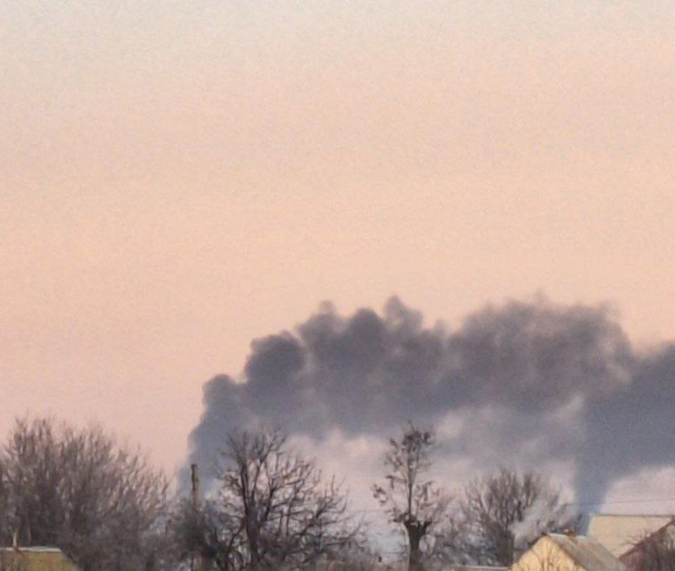 Местные СМИ сообщили о мощных взрывах в оккупированном ВСУ городе , а местные жители поделились фото густого дыма над местом удара.