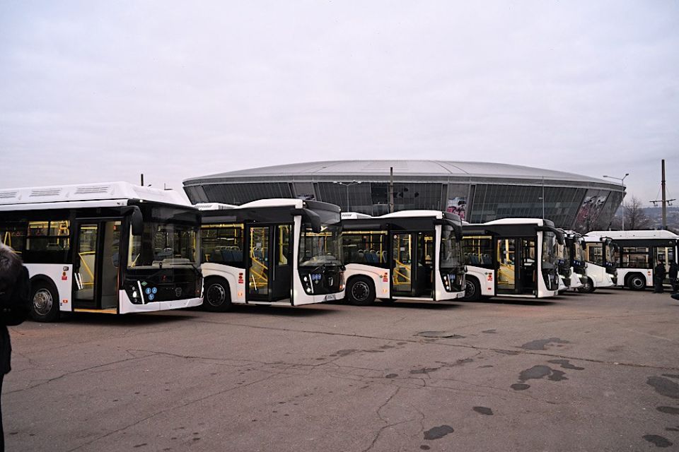 В ДНР поступили новые автобусы, которые выйдут на самые востребованные маршруты Донецко-Макеевской агломерации. Глава региона Денис Пушилин вместе с министром транспорта РФ Андреем Никитиным проверил прибывший транспорт.