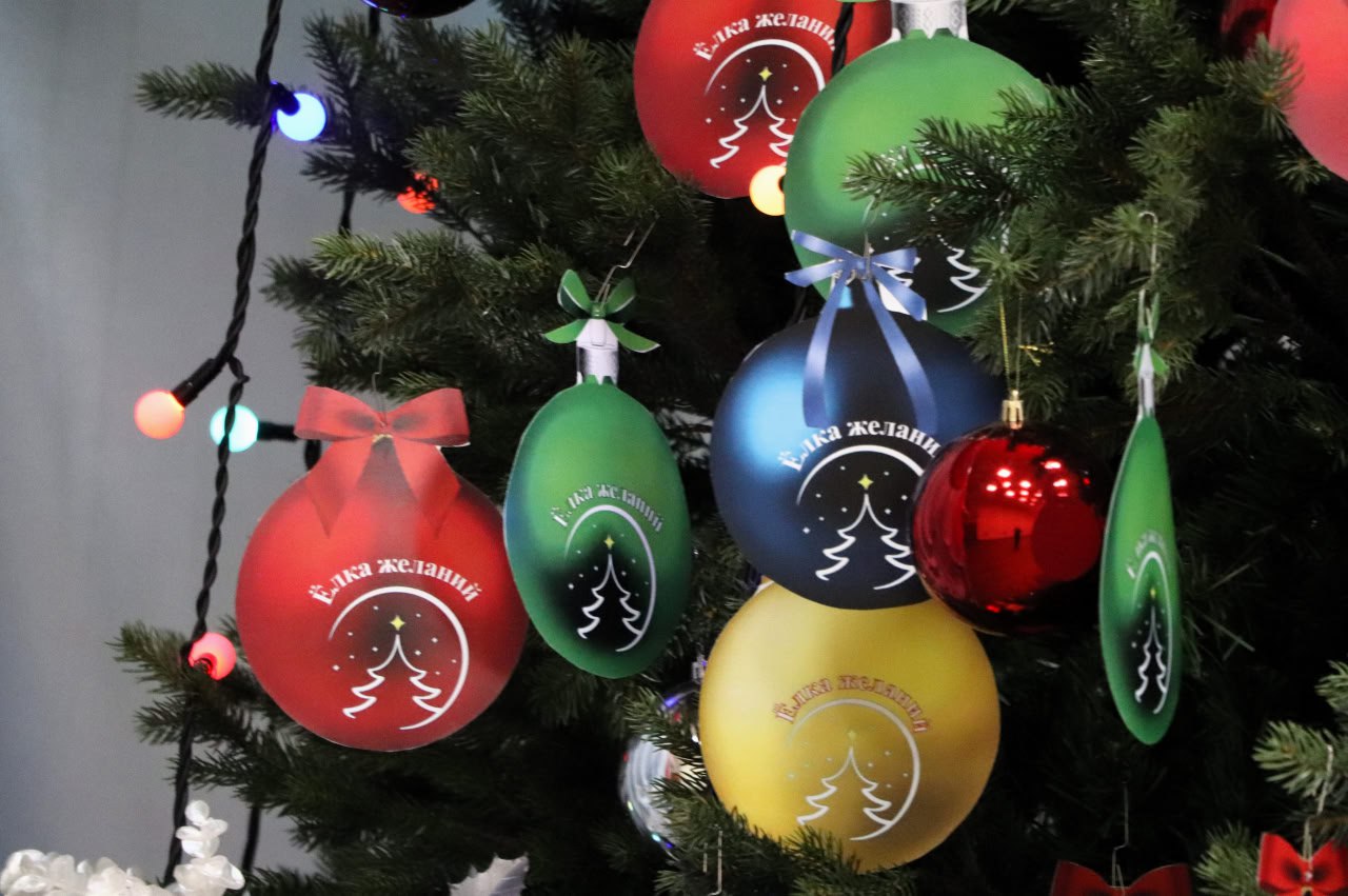 Новогодние мечты, оформленные в виде шаров с номерами, украсили праздничную ель. Исполнить эти желания пригласили работников администрации городского округа Енакиево, депутатов городского совета, представителей партии «Единая Россия», предпринимателей, руководителей учреждений и гостей из Ленинградской области.