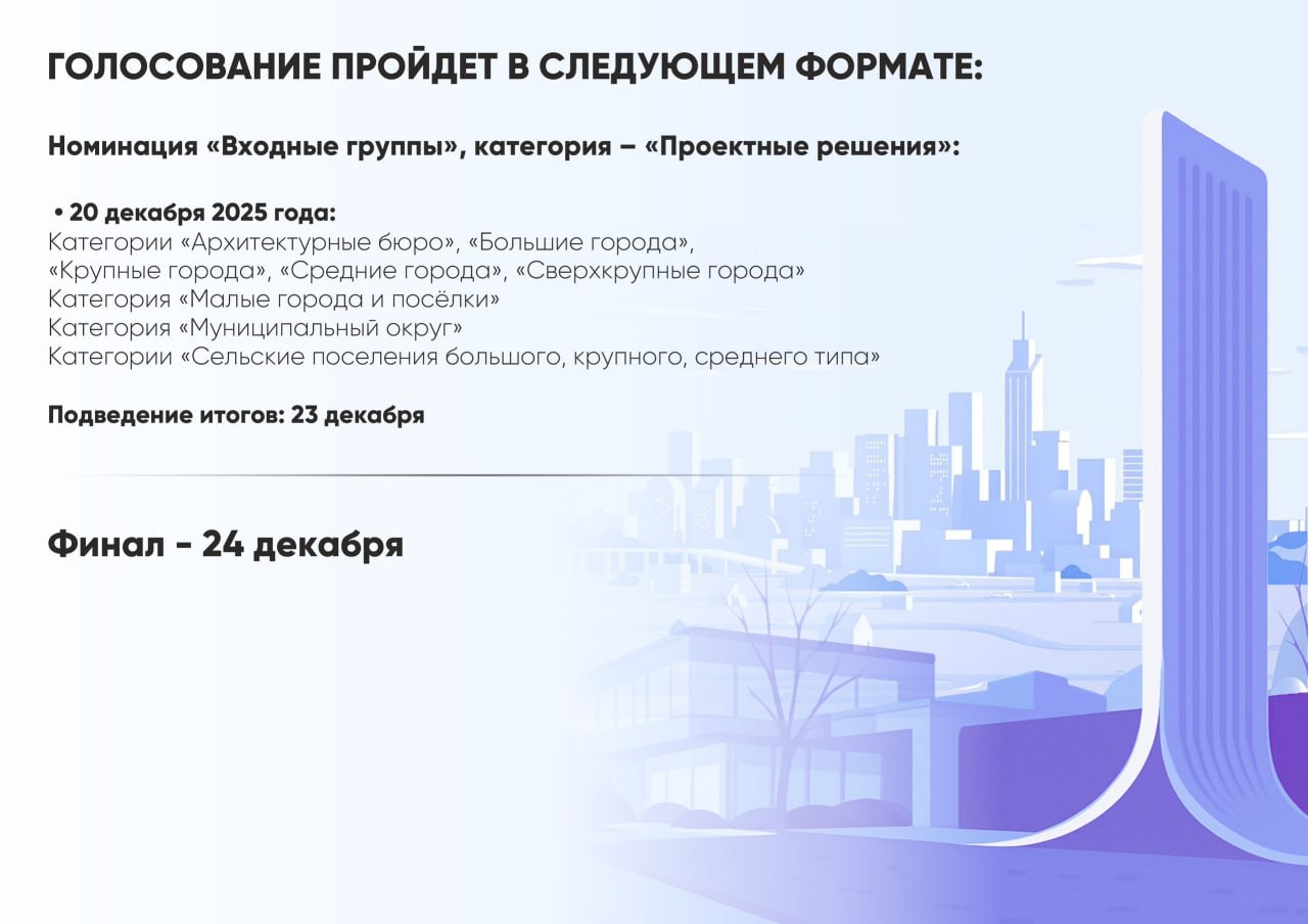 Онлайн-голосование пройдет с 10 по 23 декабря на платформе сообщества «ГорСреда» в социальной сети ВКонтакте: https://vk.com/gorsredaa.