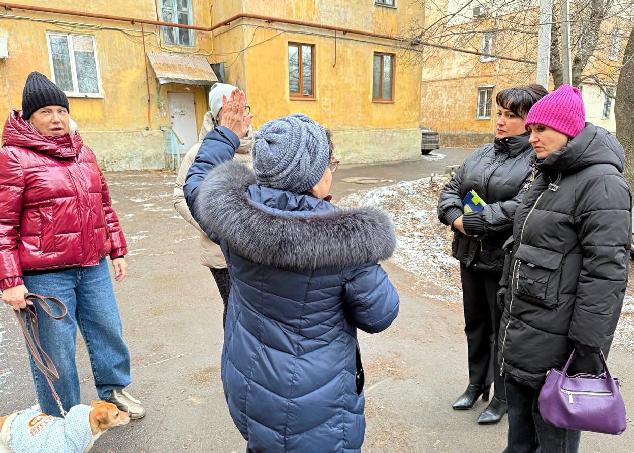 В Куйбышевском районе управляющий делами администрации городского округа Донецк Юлия Сницарь совместно с заместителем руководителя Управы района Еленой Строгановой провели встречу с жителями дома №124/2 по проспекту Панфилова.