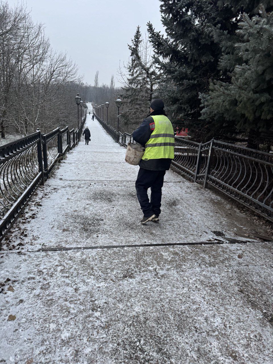 Посыпка пешеходных зон по бул. Ленина, ул. Заводская, мост в парке Железнодорожников
