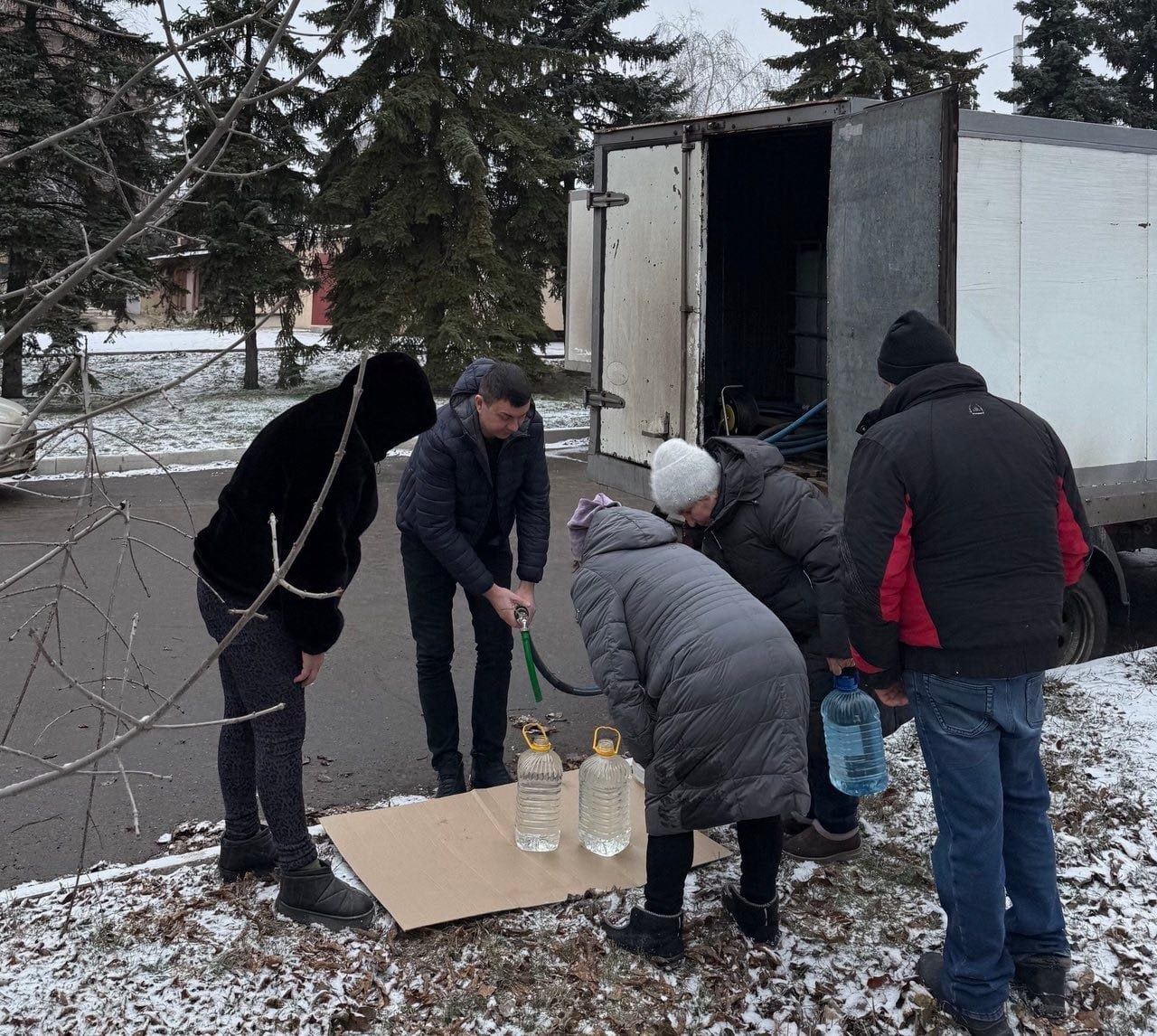 17 декабря 2025 года депутаты Горловского городского совета от фракции «Единая Россия» – София Потапова, Александр Бобровский, Николай Гальченко, Андрей Костюк, Алексей Костин – осуществили адресный подвоз воды и посетили места подвоза воды.
